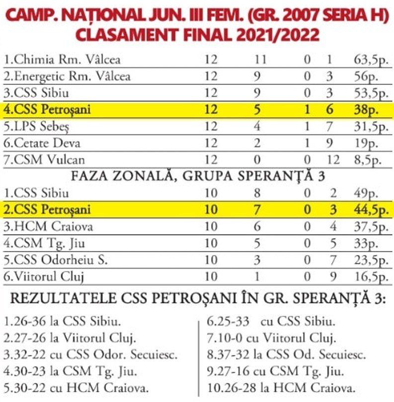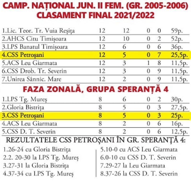 Dar fetele au înțeles misiunea lor și în general au fost receptive și au urmat sarcinile trasate. Desigur, ne-am fi droit mai mult la junioarele II, cu puțină șansă am fi putut încheia pe locul 2 în faza zonală. Ne-am calificat însă la junioare III la Turneul Final Grupa Speranță, acolo reușind în final un mulțumitor loc 5 pe țară.