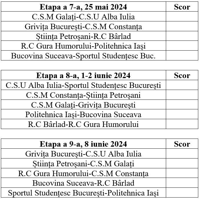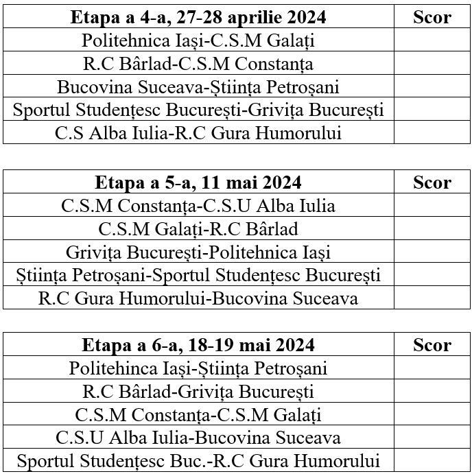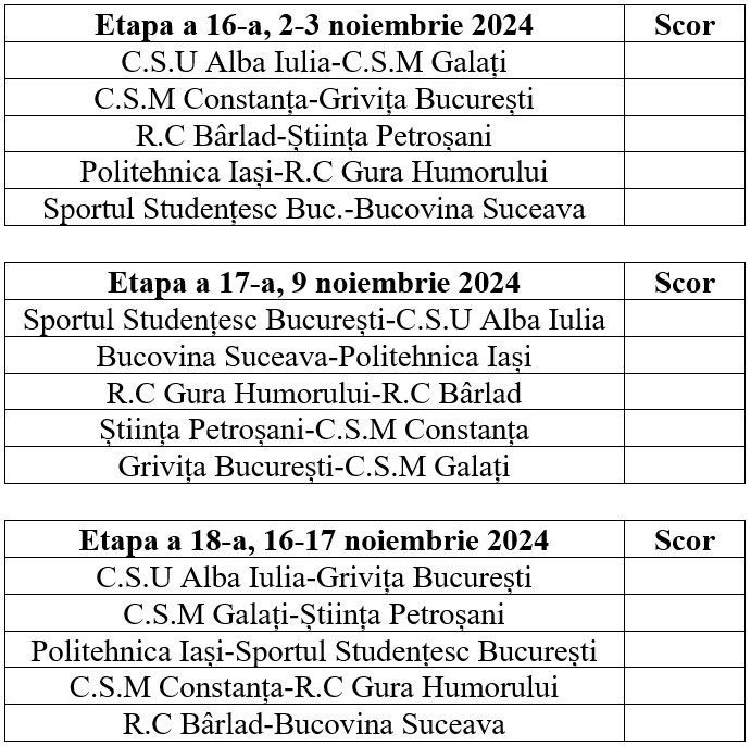 RUGBY. DIVIZIA NAȚIONALĂ SENIORI (LIGA A II-A)