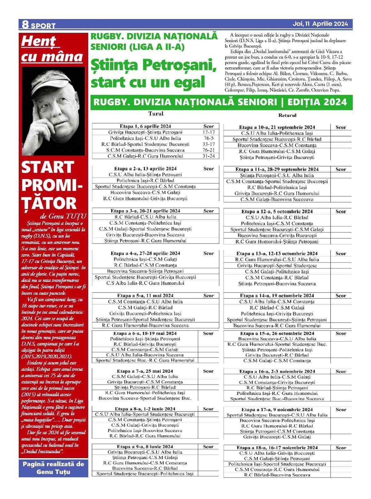A început o nouă ediție la rugby a Diviziei Naționale Seniori (D.N.S, Liga a II-a), Știința Petroșani jucând în deplasare la Grivița București.