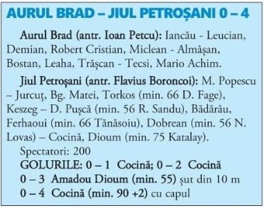 Aurul Brad - Jiul Petroșani 0 - 4 (0 - 1)
