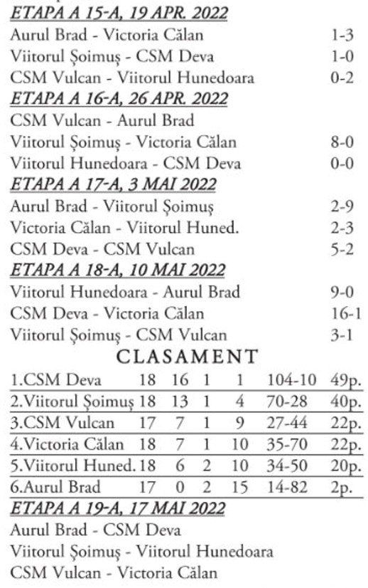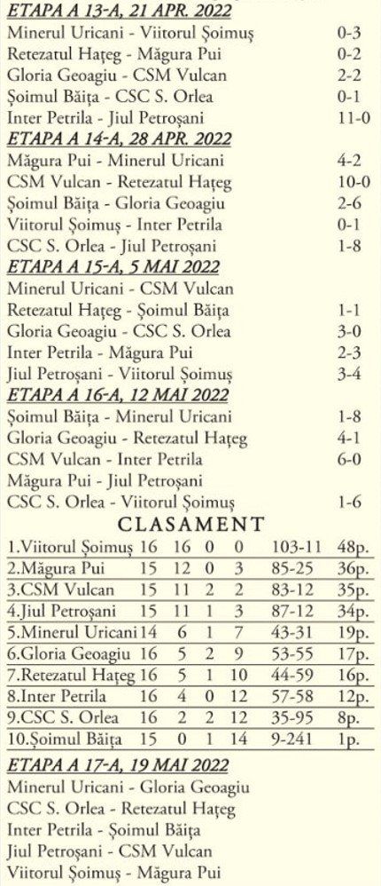 Celelalte echipe din Valea Jiului, locuri mai modeste, dar vorba aceea, după posibilități...