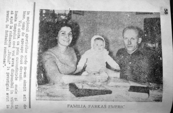 EMERIC FARKAS II, cu fabuloasa poveste când, junior fiind în 1947, s-a ascuns în autobuzul seniorilor care se deplasau la Tg. Mureș, sau că 13 ani a jucat doar la o singură echipă, Jiul, și prezențele în echipa Națională B a României.