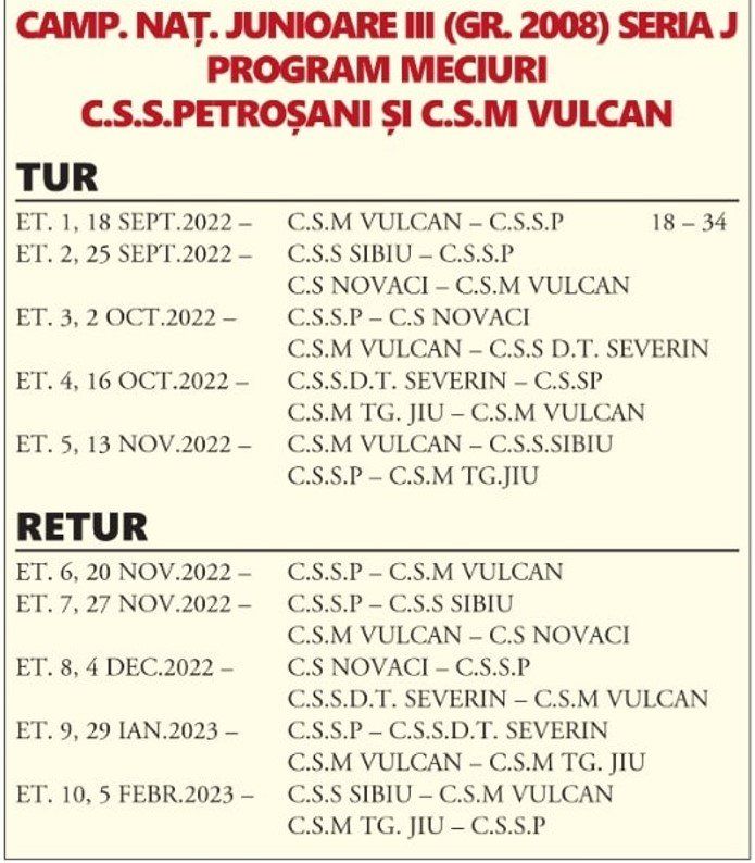 La junioare III, C.S.S.P rămâne în zona ,,Olteniei de sub munte”, plus Vulcanul, Dr. Tr. Severin și Sibiu.