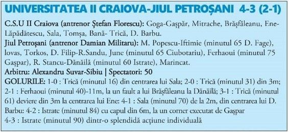 Universitatea II Craiova - Jiul Petroșani 4-3 (2-1)
