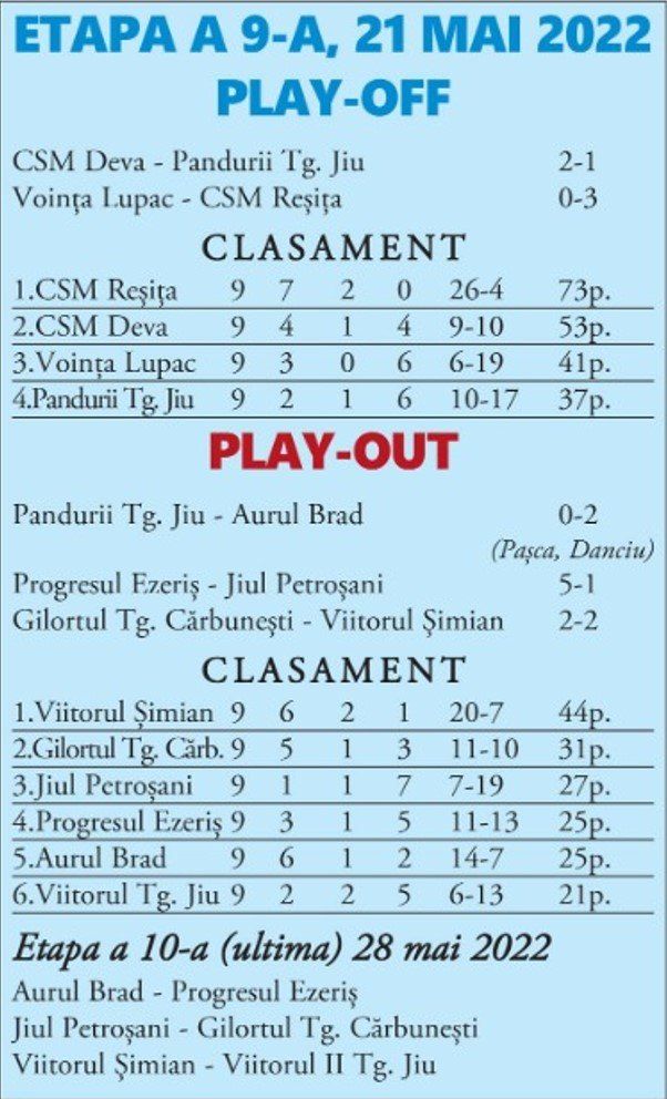 Punct final în sezonul play-off pentru liga a III-a, cu o echipă Reșița care își pregătește barajul de promovare.