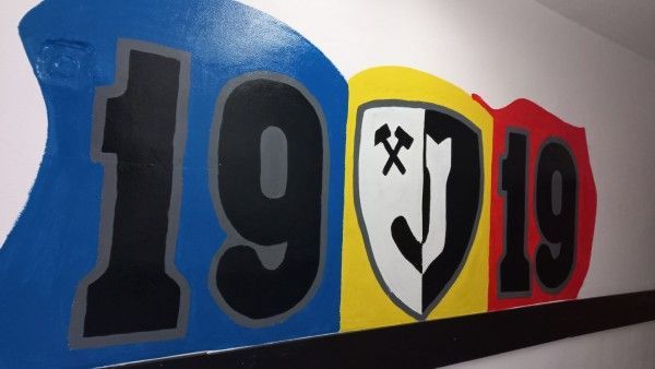 Pe fondul tricolorului românesc – practic , echipa a fost înființată la câteva luni după Marea Unire de la 1 Decembrie 1918 –, au fost așezate însemnele insignei de bază a echipei. O reușită combinație, o inspirată alegere a celor care au avut această excelentă idee. Fapt ce ne-a dus cu gândul ca până la reluarea sezonului viitor, 2023 – 2024, să completăm la rândul nostru panoplia foto în spațiile rămase libere după fotomontajul realizat în 2019. Hai că-i bine!