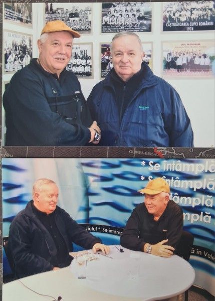 Alături de Cristian Țopescu în două ipostaze, în anul 2009: în cabina de transmisie a stadionului „Petre Libardi” din Petroșani și într-o emisiune la Mondo TV.