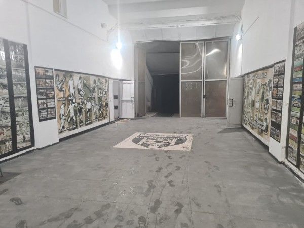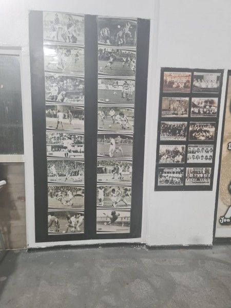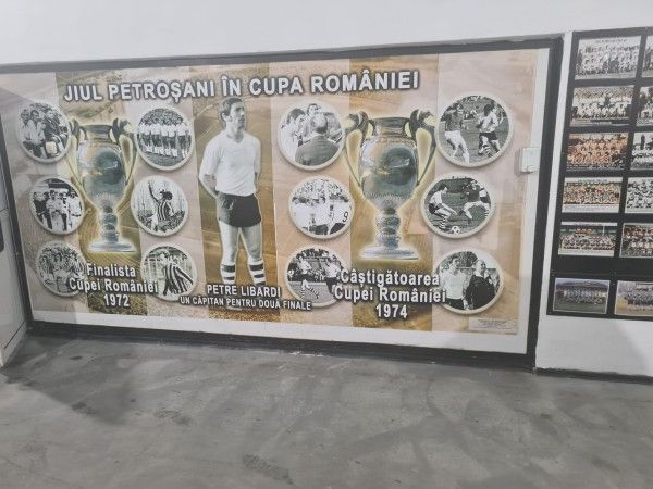 Zona de prezentare a „Tunelului Legendelor” de la stadionul „Petre Libardi” din Petroșani, culoarul spre teren și culoarele spre vestiare.