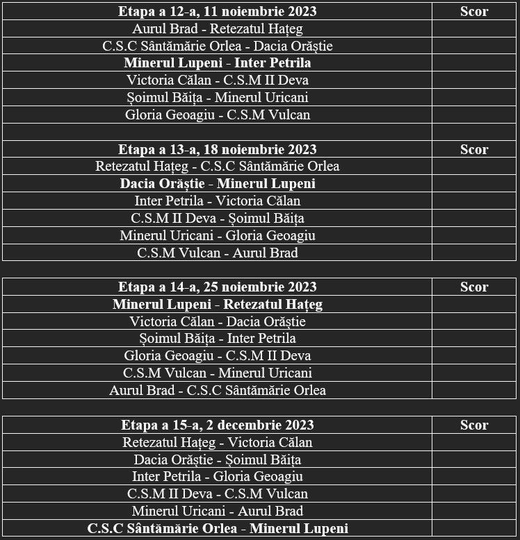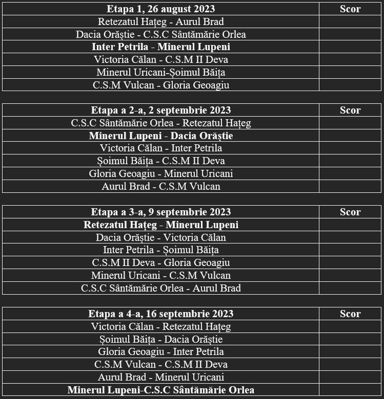 FOTBAL. LIGA A IV-A HUNEDOARA | Ed. 2023-2024