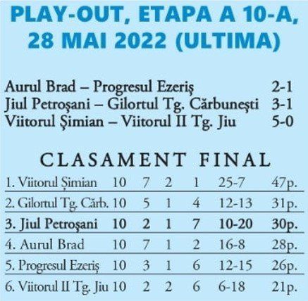 Final de sezon pentru Jiul, chinuit și necăjit, dar măcar cu o prestație remarcabilă în ultima etapă.