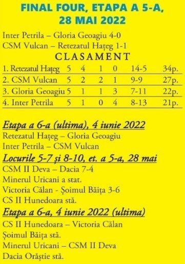 Echipa lui Bona a reușit din nou titlul județean, fiind campioană matematic înainte cu două etape de final. Așadar, fiesta la final de săptămână la Hațeg, la ultimul meci cu Gloria Geoagiu.