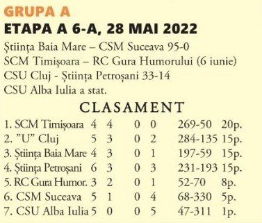 De remarcat victoria la scor a campioanei Baia Mare.